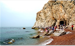 大欽島崩崖地貌之壯觀不遜九丈崖,登上島上的高峰,眺望小欽島,遙看黃渤海,山海美景,盡收眼底。島上沒有污染,空氣甜甜的,海風(fēng)拂過(guò)帶來(lái)一點(diǎn)海蝦味、海帶味,沁人心脾。
