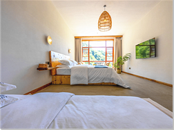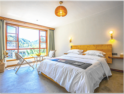 民宿設(shè)施齊全,服務(wù)功能完善,室內(nèi)裝飾到位,客房整潔寬敞,床上用品舒適柔軟,躺在床上可享受山村清晨第一縷陽(yáng)光的沐浴;起床推窗盡情的呼吸清甜的空氣,眺望遠(yuǎn)出或隱或現(xiàn)的云霧纏繞在山巒之中,好一幅山村如畫的美景。